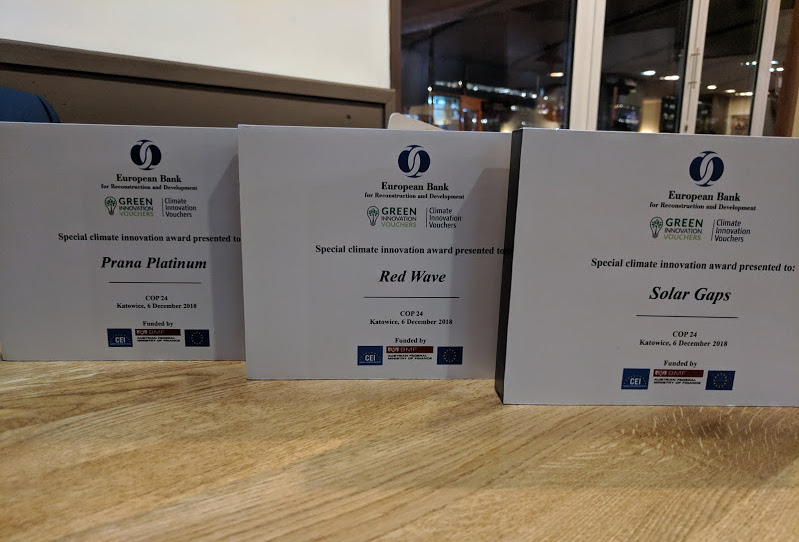 В польському місті Катовіце триває міжнародна кліматична конференція ООН COP24. Протягом двох тижнів лідери країн світу, представники державних органів та громадських екологічних організацій визначатимуть ефективні методи реалізації Паризької кліматичної угоди. Greencubator презентував на конференції програму підтримки «зелених» інновацій в Україні «Кліматичні інноваційні ваучери», а компанії PRANA, SolarGaps і «Червона хвиля» отримали спеціальні відзнаки від організаторів COP24.