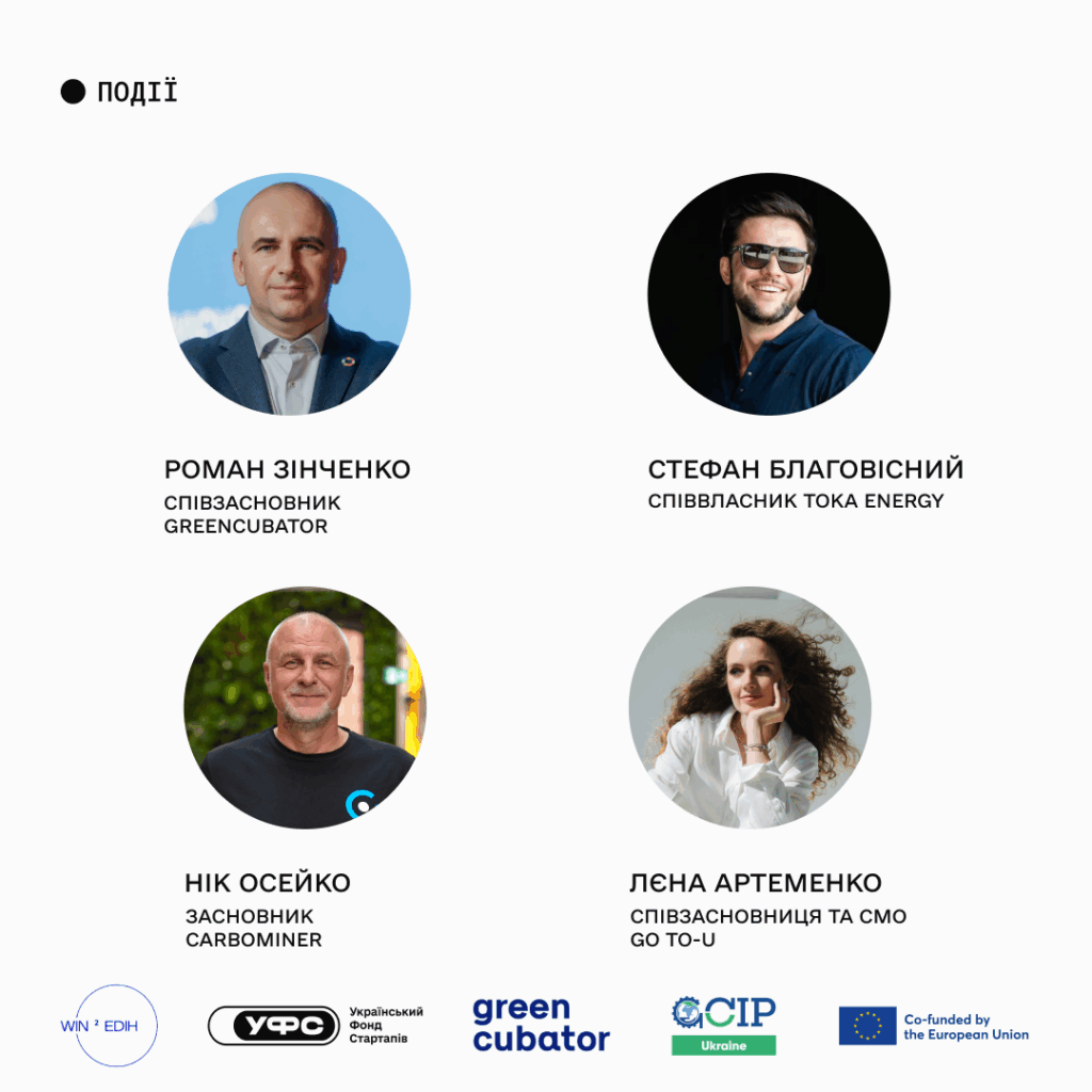 - Роман Зінченко, співзасновник Greencubator, експерт з розвитку кліматичних інновацій, фасилітатор програм підтримки стартапів.